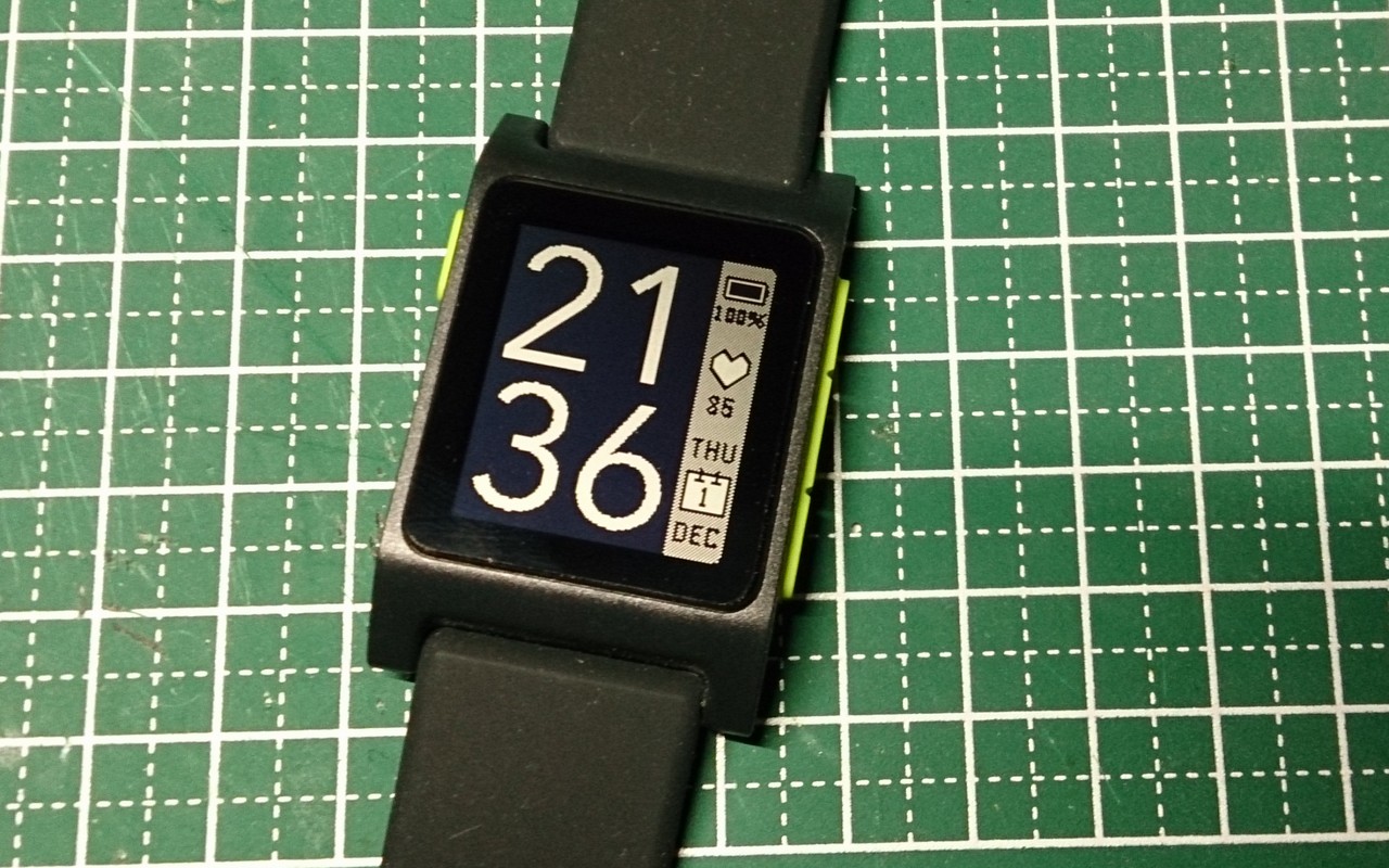 今回購入したのはPebble2 HRなんで心拍計付きでして、ウォッチフェイスに心拍数の表示も出ます。ただ、表示の更新は5分か10分ごとという感じのためリアルタイムに見たい場合は別途アプリを入れたりする必要ありですね。