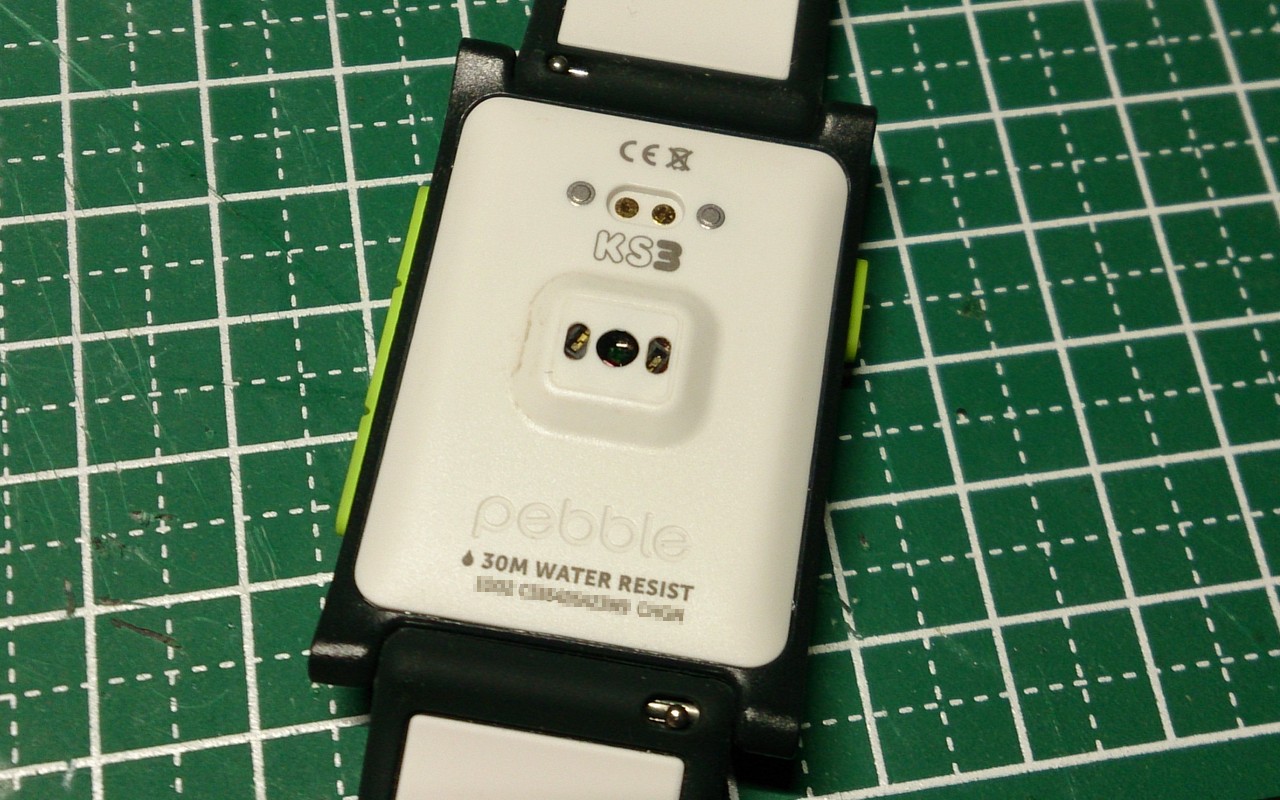 中心にあるのが心拍センサ、その上が充電用のコンタクトなんですが初めて見たときは「?」となりました。というのも、充電端子にプラスマイナスの区別がないんですよね。