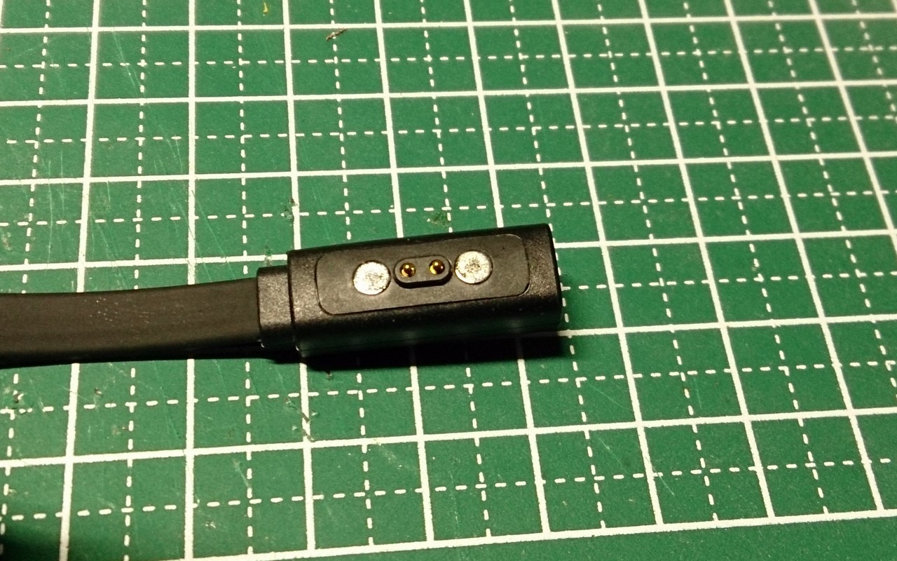 この充電用ケーブルの金色の部分が5V、両脇の磁石部分がマイナスになっているようでした。