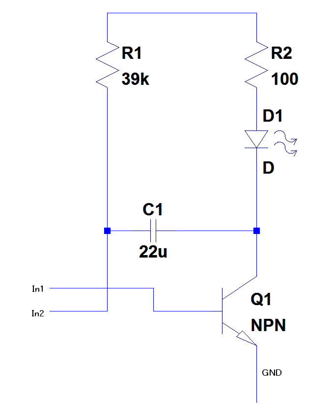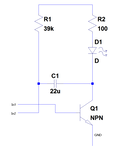 まずは無安定マルチバイブレータを1段だけ抜き出したものです。