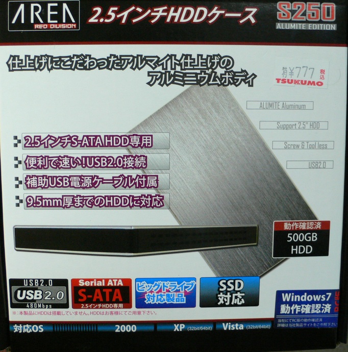 フツーだったらメーカー製の外付けHDDを買うべきなんでしょうが、いつものクセでHDDと外付けケースを別々に買ってしまいました(笑)