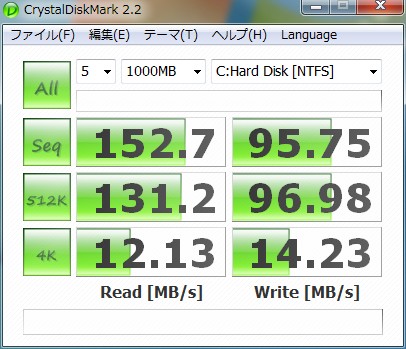 ついでに今まで使ってた2.5’HDD(HGST)の結果はコチラ。
