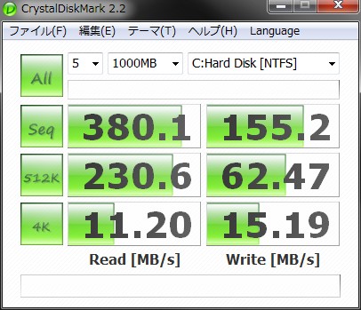 まあこんなもんですかね。500GBながら、1TBのHDDにも負けない速度だと思います。