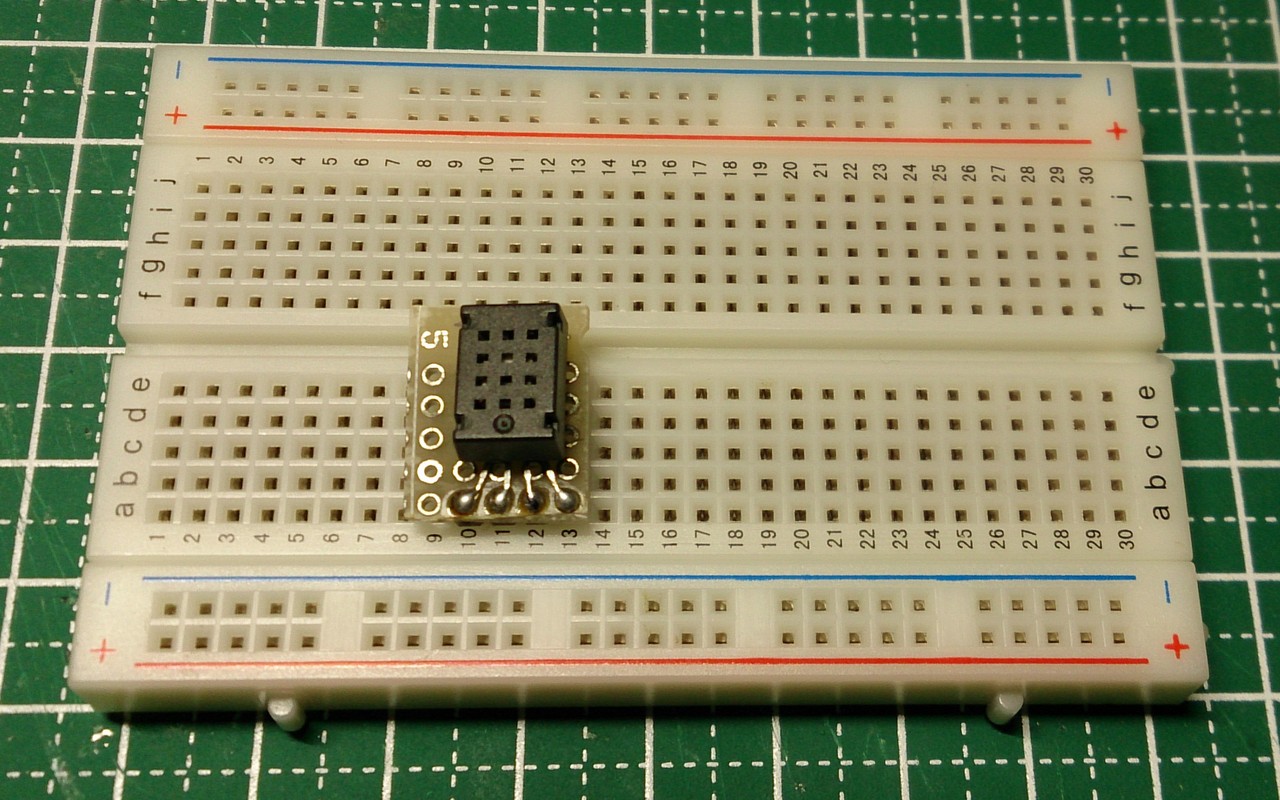 しかし1つ問題が。AM2321はピンの幅がブレッドボードに合ってないので、ちょっと加工が必要です。