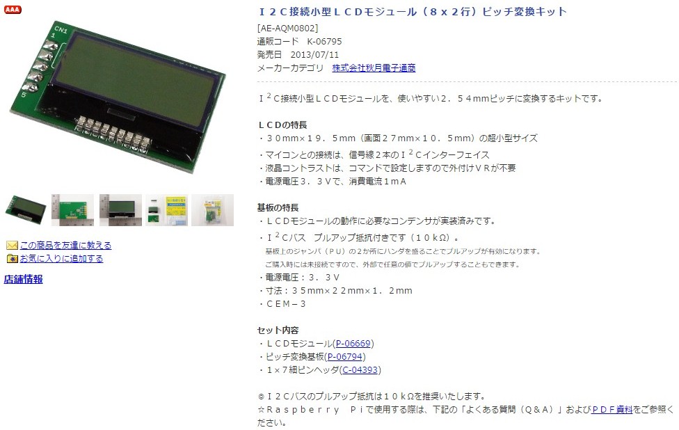 キャラクタ液晶も秋月で買えるAQM0802をチョイス(\600)。